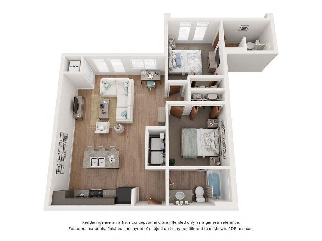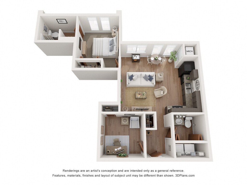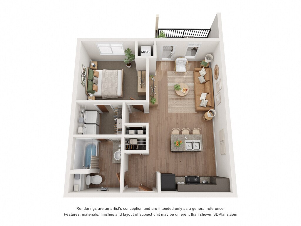 1 Dormitorio, 1 Baño, 755 pies²Disponible AhoraGalería del Modelo