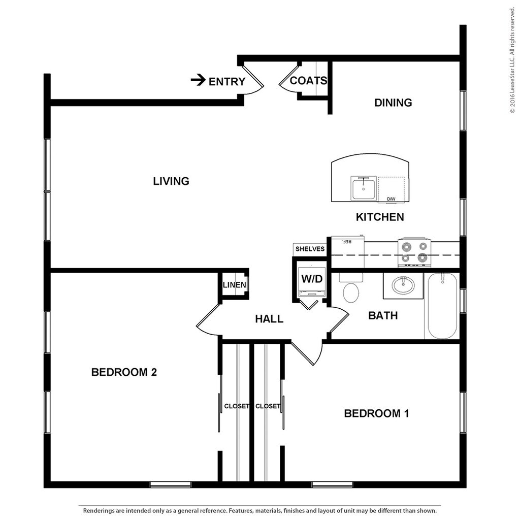 2 Dormitorios, 1 Baño, 975 pies²Disponible AhoraGalería del Modelo