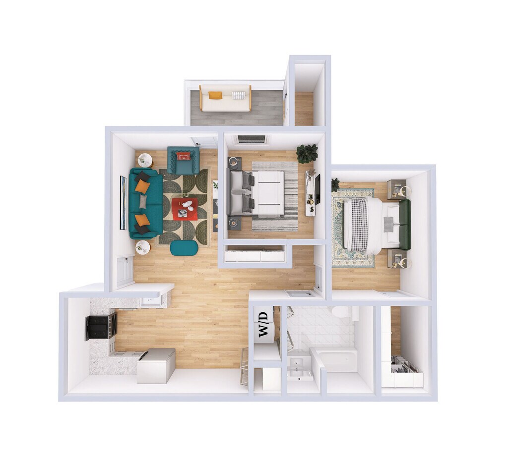 2 Dormitorios, 1 Baño, 834 pies²Disponible AhoraGalería del Modelo