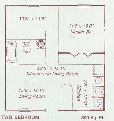 Modelo de apartamento: 2 BD/1 BA$1,1232 Dormitorios, 1 Baño, 800 sq ftDisponible Ahora![]()
