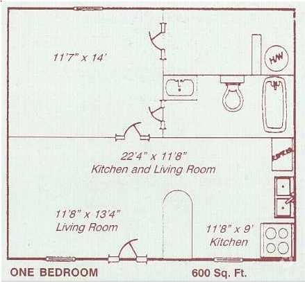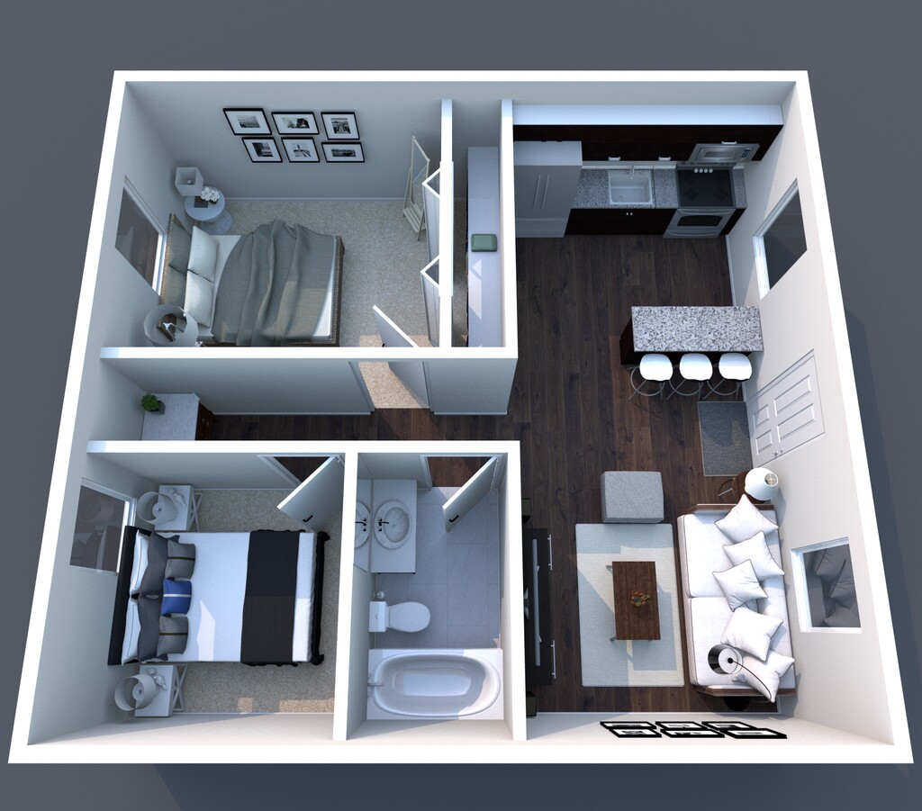 1 Dormitorio, 1 Baño, 600 pies²Disponible AhoraGalería del Modelo