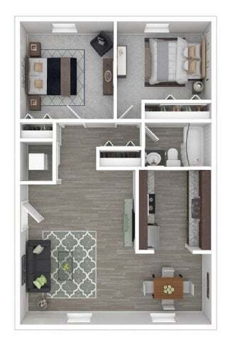 Modelo de apartamento: 1 Bedroom 1 Bath Classic$9251 Dormitorio, 1 Baño, 694 sq ftNo Disponible![]()