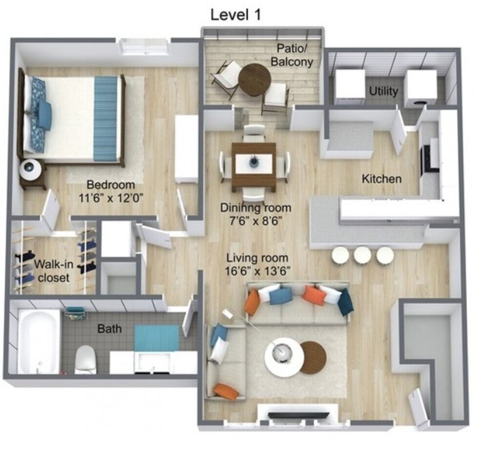 1 Dormitorio, 1 Baño, 711 pies²Disponible Nov 15Galería del Modelo