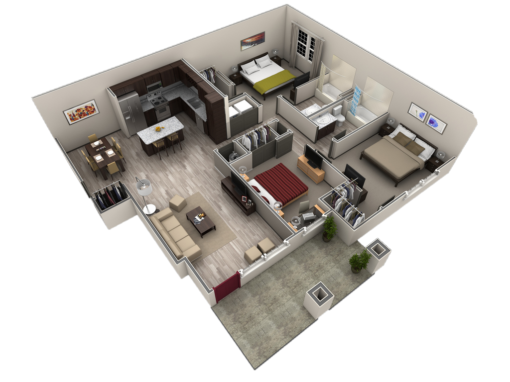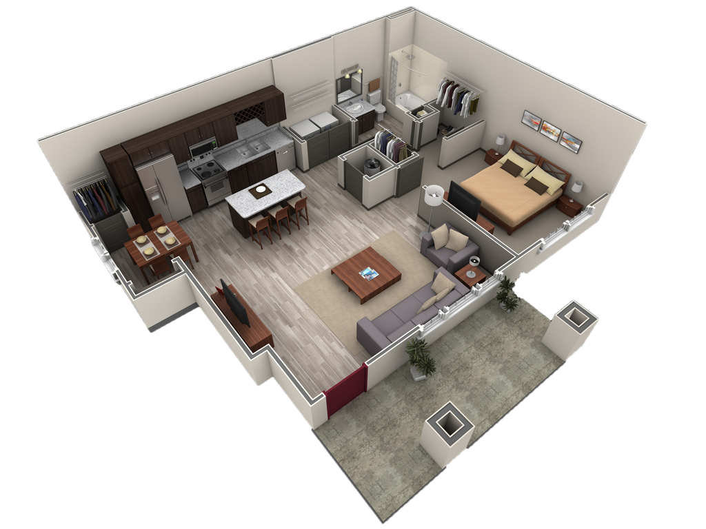 Modelo de apartamento: 1 BR Grand Courtyard1 Dormitorio, 1 Baño, 831 sq ftDisponible Ahora![]()