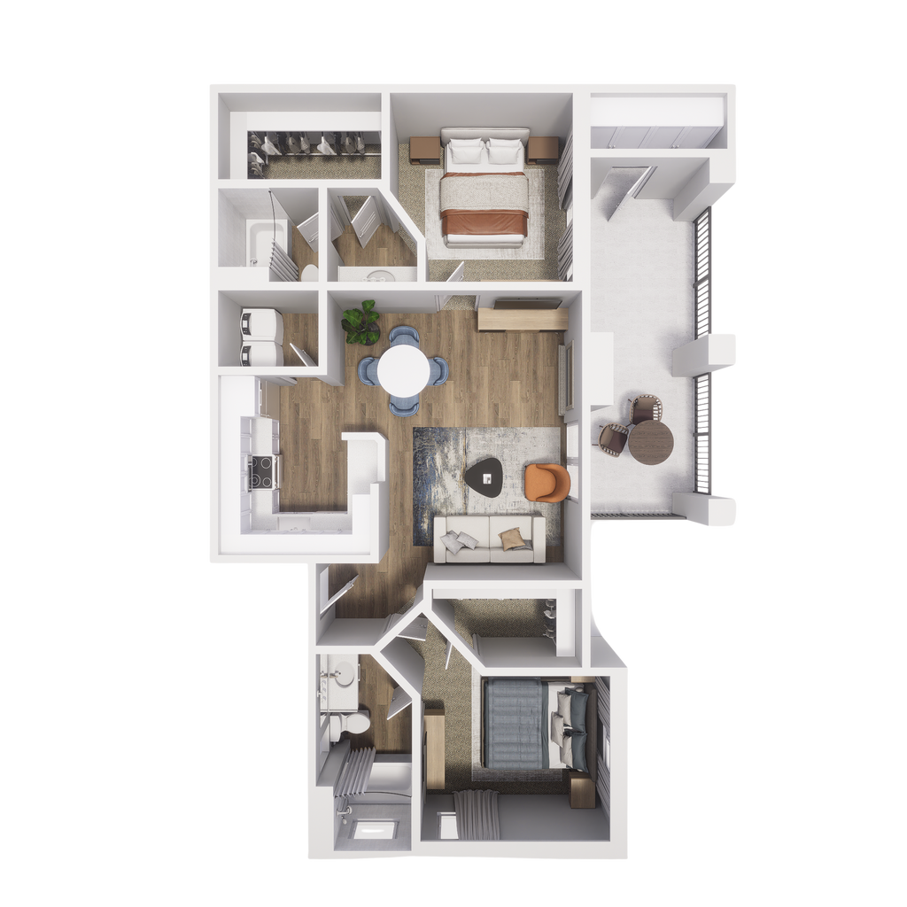 2 Dormitorios, 2 Baños, 1048 pies²Disponible January 25, 2026Galería del Modelo