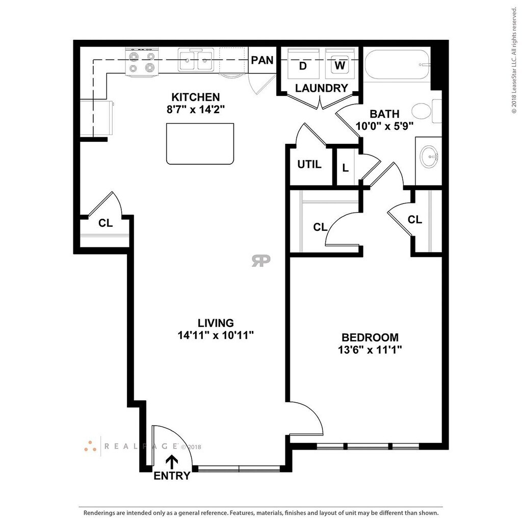 Estudio, 1 Baño, 525 pies²Galería del Modelo