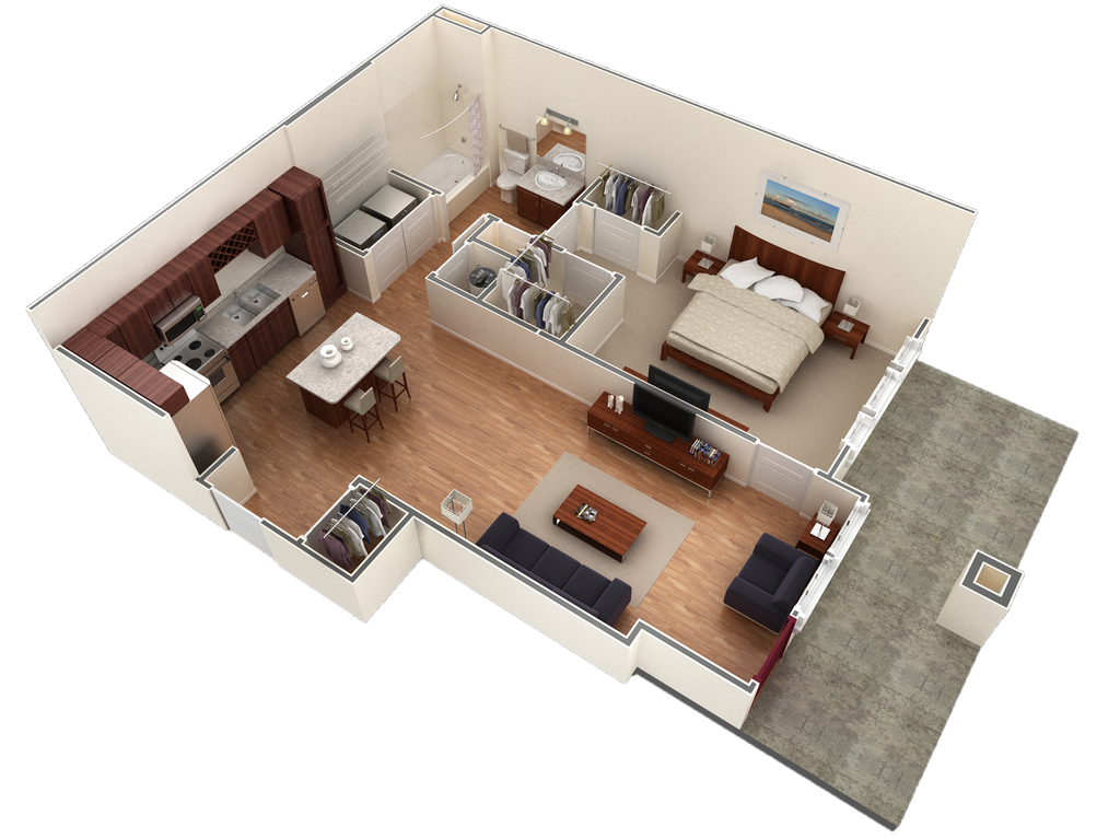 Modelo de apartamento: Studio Grand Courtyard$1,114Estudio, 1 Baño, 525 sq ftNo Disponible![]()