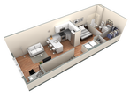 Estudio, 1 Baño, 662 pies²Disponible March 3, 2026El más grandeEsta opción tiene las unidades más grandes para este modeloGalería del Modelo