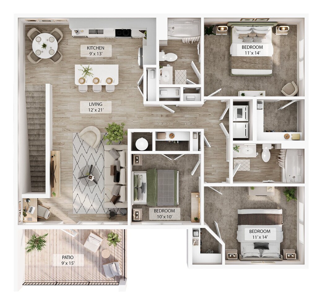 1 Dormitorio, 1 Baño, 909 pies²Precio Mensual TotalDisponible AhoraEl más grandeEsta opción tiene las unidades más grandes para este modeloGalería del Modelo