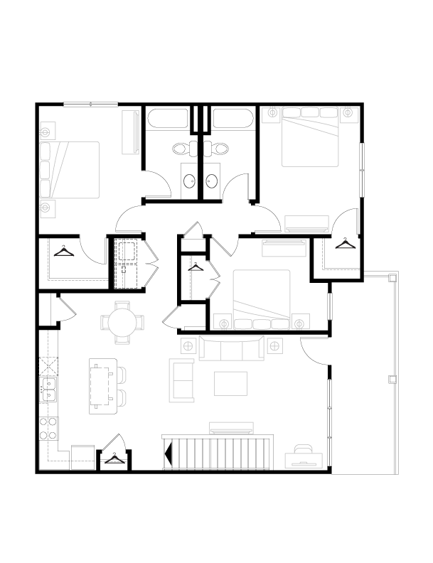 1 BR Grand Courtyard - Plano 2 2 Dormitorios