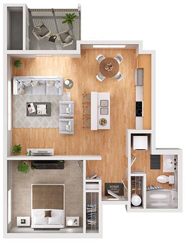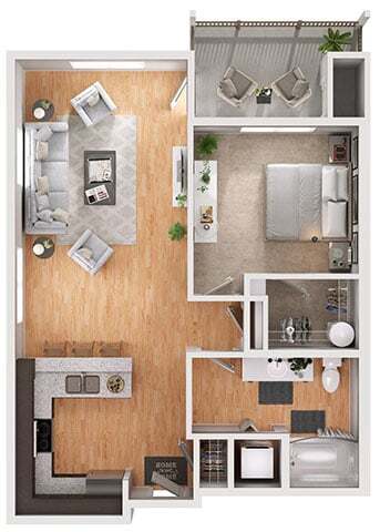 1 Dormitorio, 1 Baño, 744 pies²Disponible AhoraGalería del Modelo