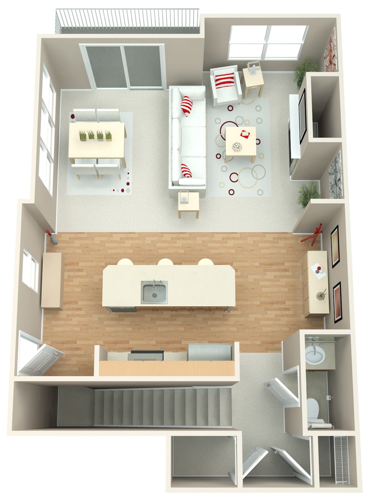 1 Dormitorio, 1 Baño, 735 pies²Galería del Modelo