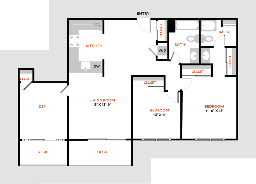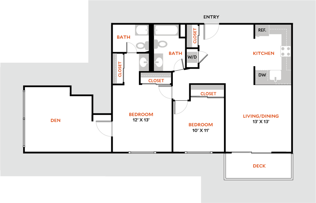 1 Dormitorio, 1 Baño, 572 pies²Disponible AhoraGalería del Modelo