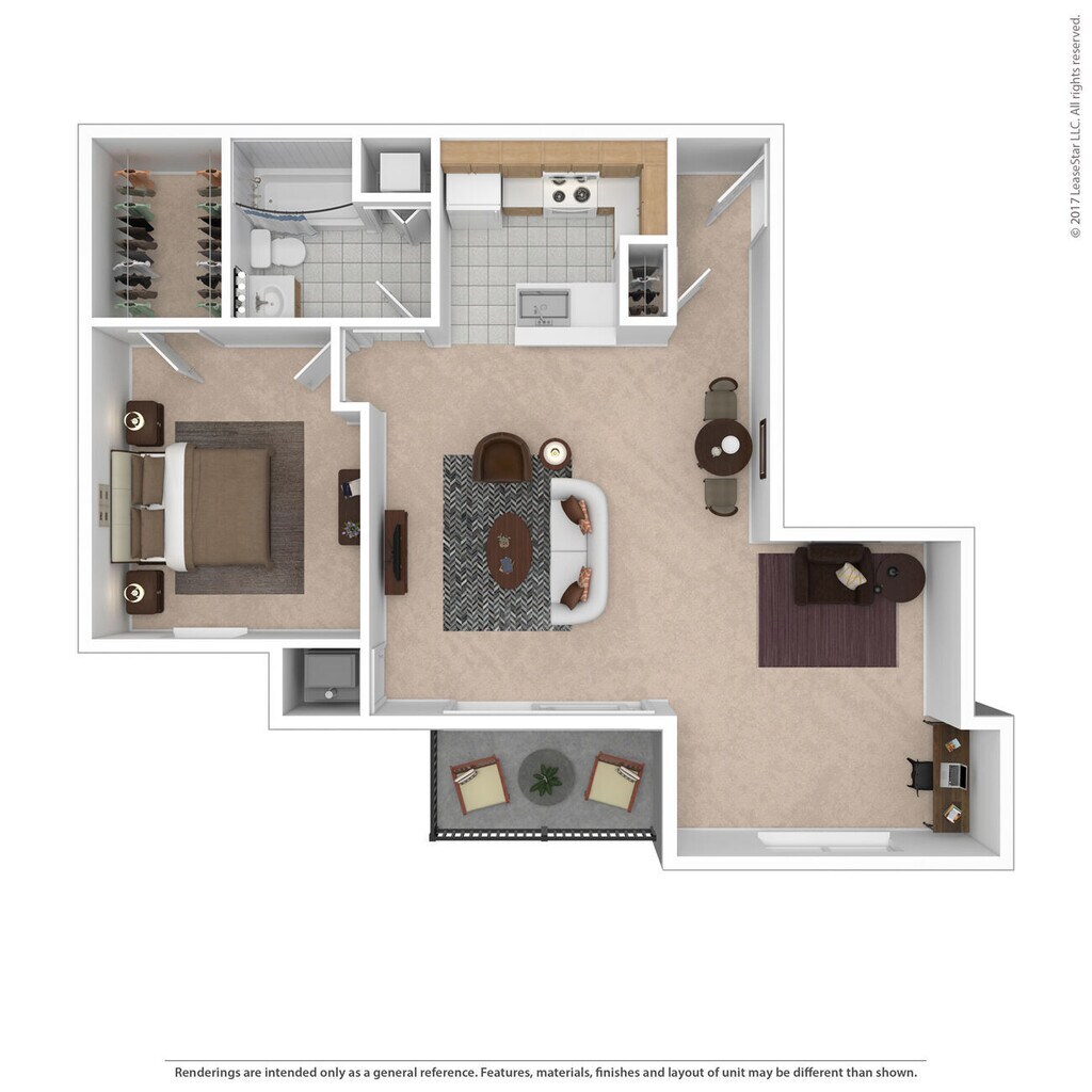 1 Dormitorio, 1 Baño, 736 pies²Disponible Feb 28Galería del Modelo