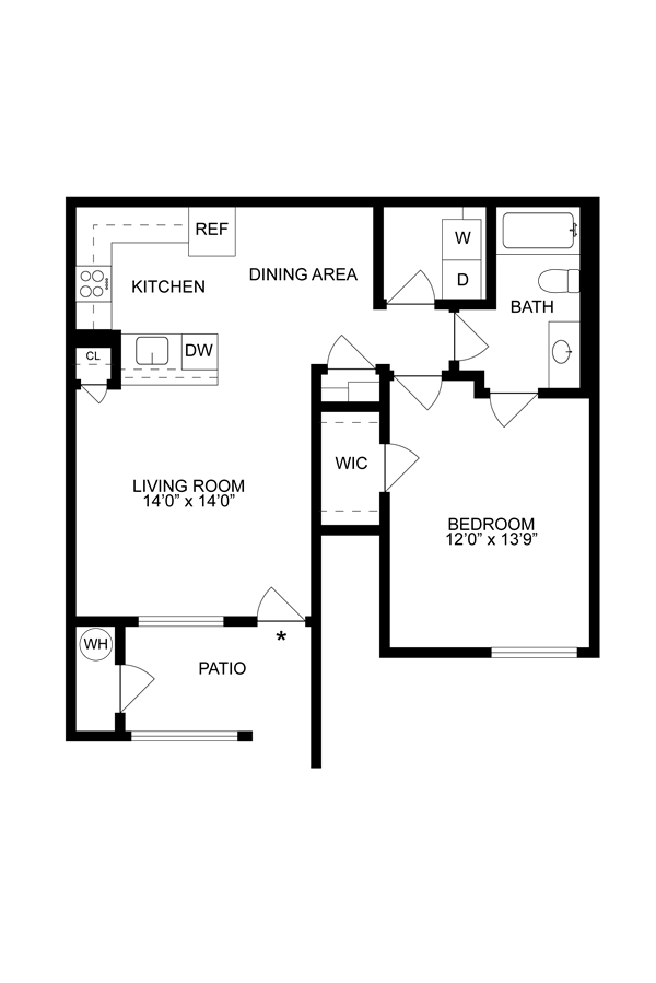 Modelo de apartamento: CarriageDesde $1,6791 Dormitorio, 1 Baño, 897 sq ftDisponible Ahora![]()