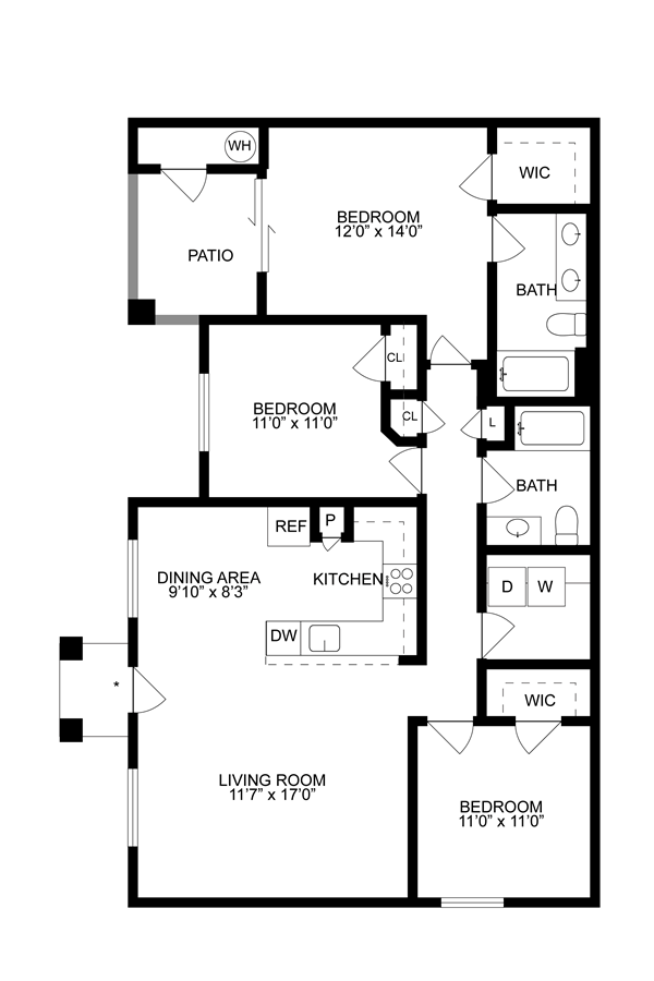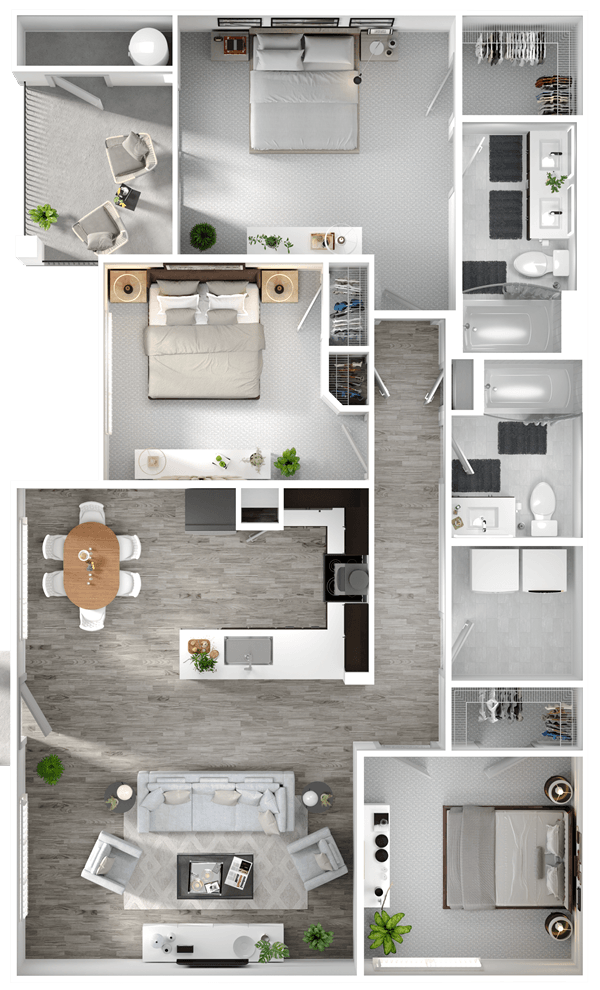 Modelo de apartamento: 1X1BDesde $1,4971 Dormitorio, 1 Baño, 898 sq ftDisponible Ahora![]()