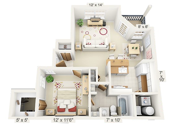 Modelo de apartamento: 1aDesde $1,3051 Dormitorio, 1 Baño, 717 sq ftDisponible Ahora![]()