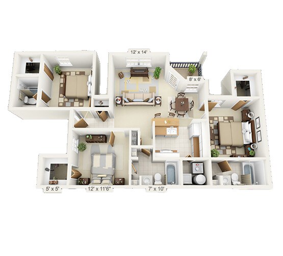 Modelo de apartamento: 3Desde $6753 Dormitorios, 2 Baños, 1188 sq ftDisponible Ahora![]()