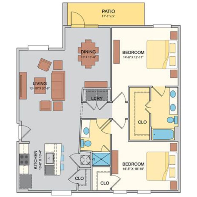 1 Dormitorio, 1 Baño, 811 pies²Disponible AhoraEl más grandeEsta opción tiene las unidades más grandes para este modeloGalería del Modelo