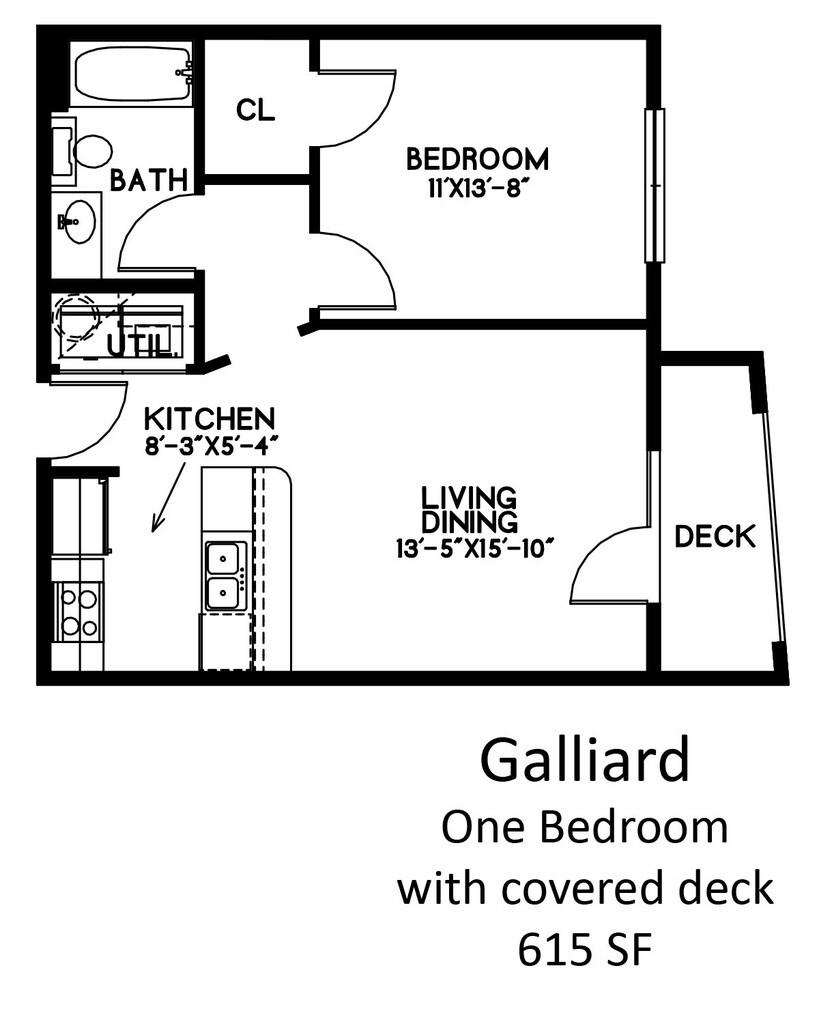1 Dormitorio, 1 Baño, 615 pies²Galería del Modelo