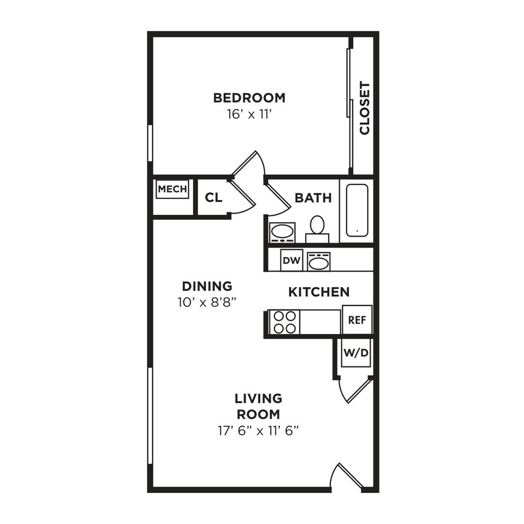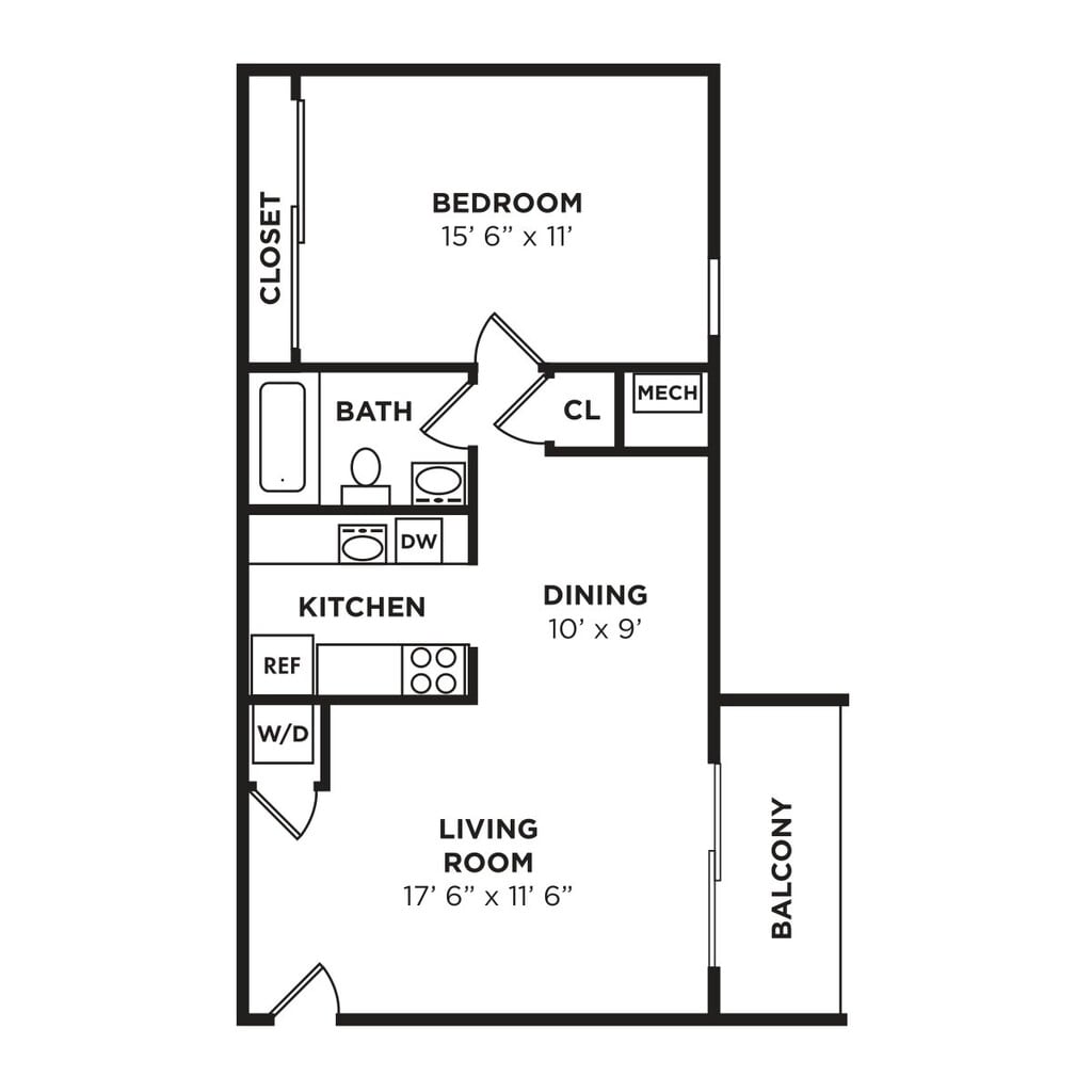 Modelo de apartamento: One Bedroom- 510 sqftLlame para Precios1 Dormitorio, 1 Baño, 510 sq ftNo Disponible![]()