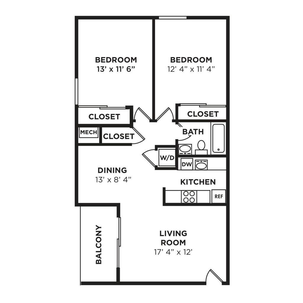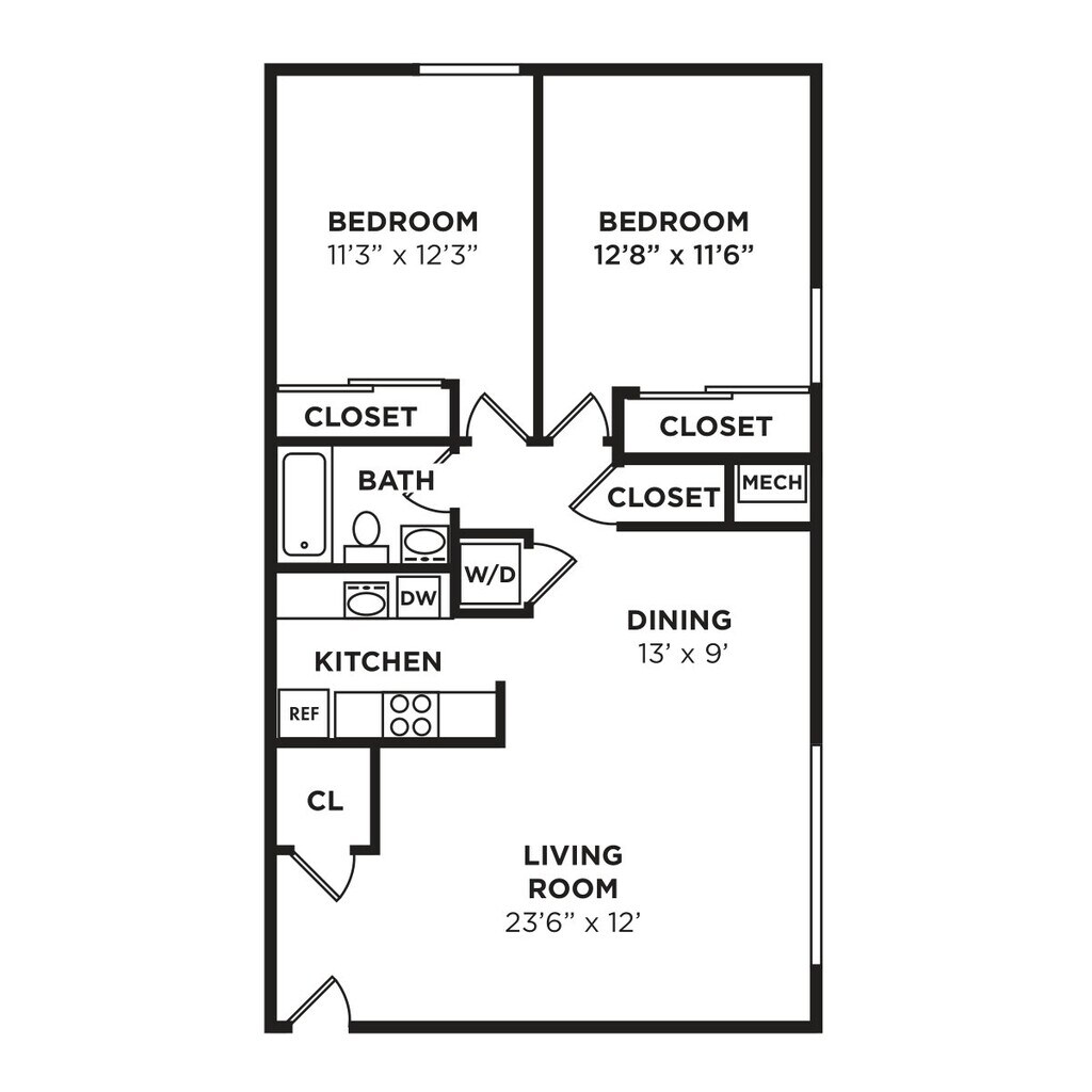 Modelo de apartamento: Two BedroomDesde $1,1902 Dormitorios, 1 Baño, 960 sq ftDisponible Ahora![]()