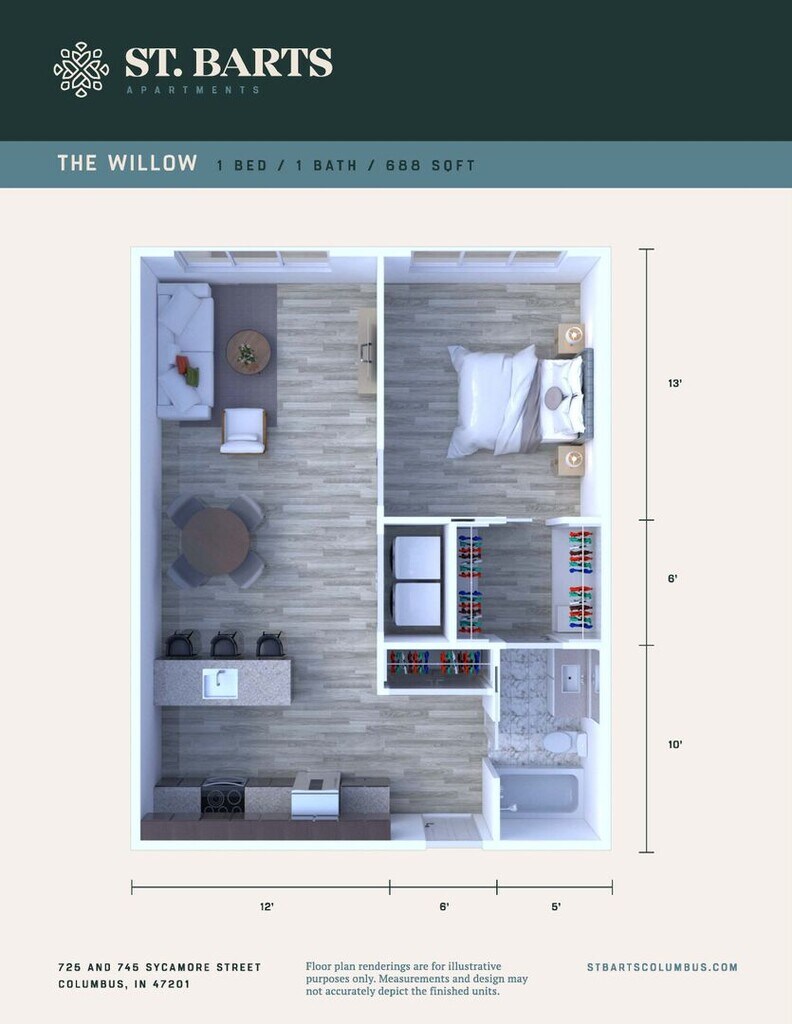 St. Barts Apartments se encuentran en 725 Sycamore St cerca de la zona Downtown Columbus IN en Columbus, IN