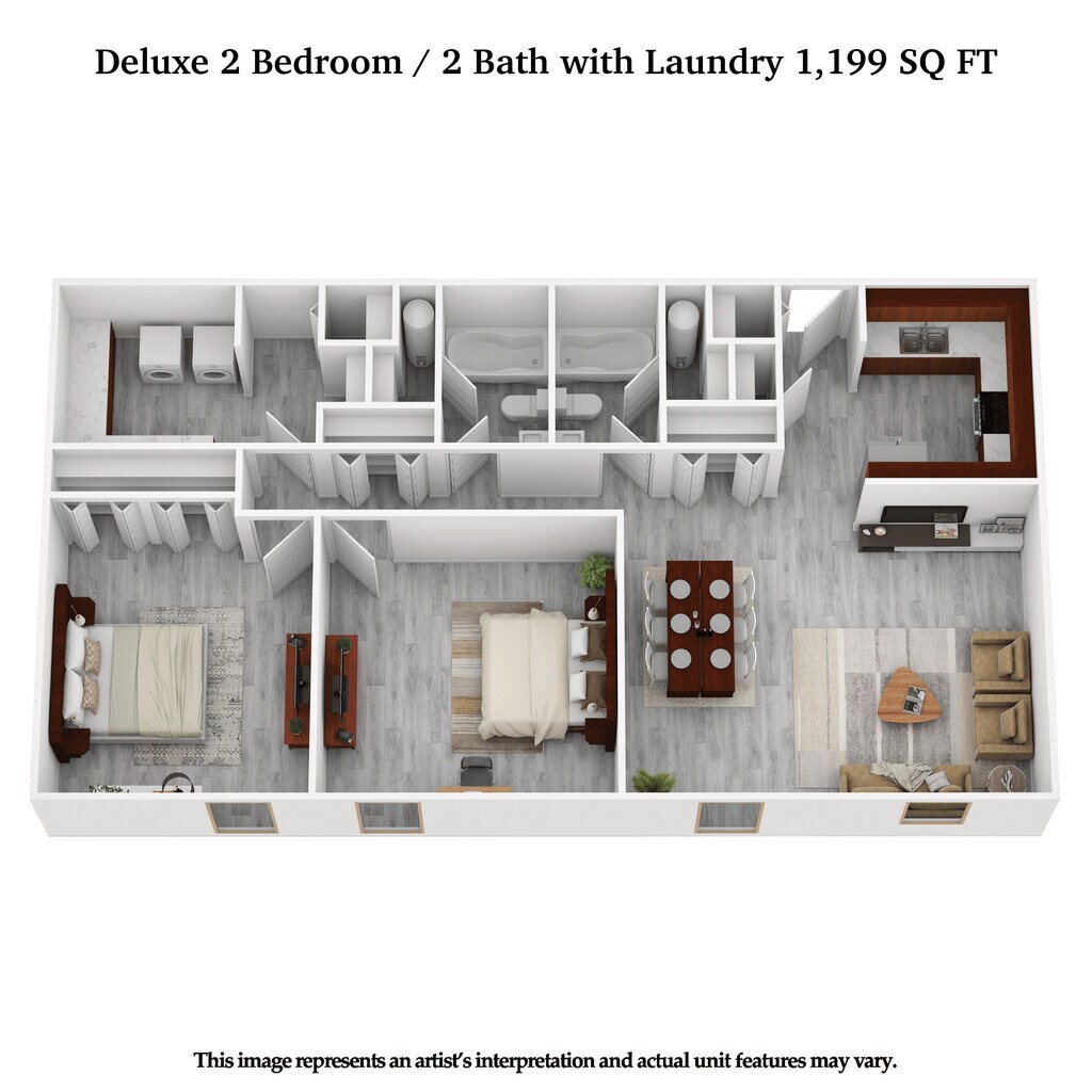 Modelo de apartamento: 2 Bedroom 2 Bath Deluxe$2,7952 Dormitorios, 2 Baños, 1199 sq ftDisponible Ahora![]()