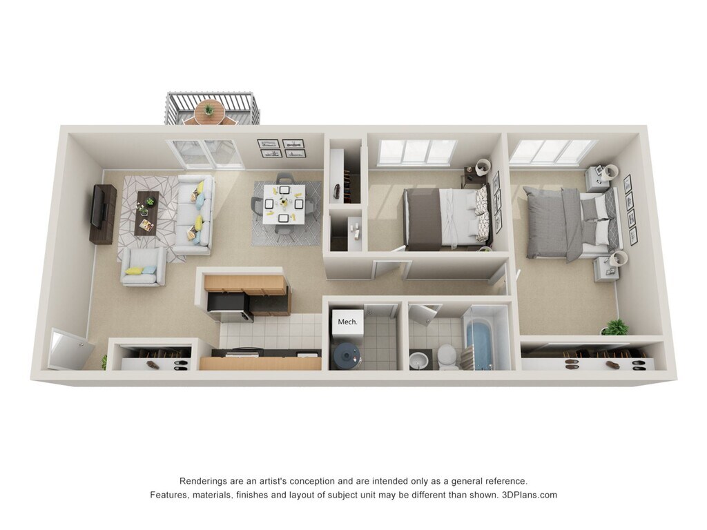 2 Dormitorios, 1 Baño, 975 pies²Disponible Mar 1Galería del Modelo