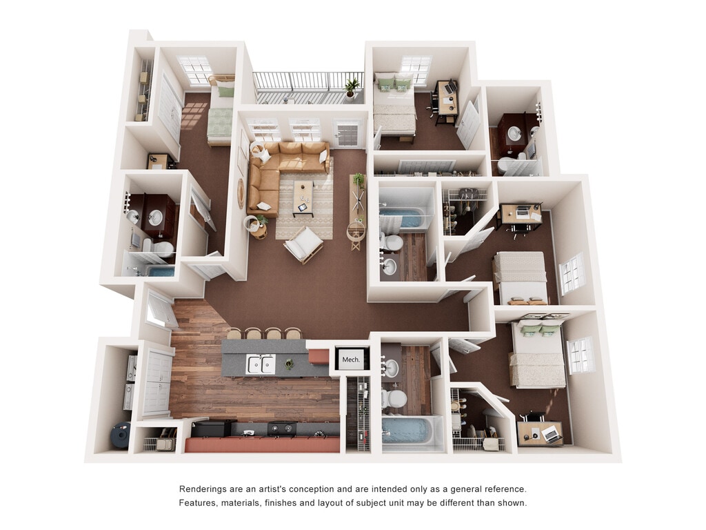 Modelo de apartamento: 4x4Desde $5824 Dormitorios, 4 Baños, 1350 sq ftDisponible Ahora![]()