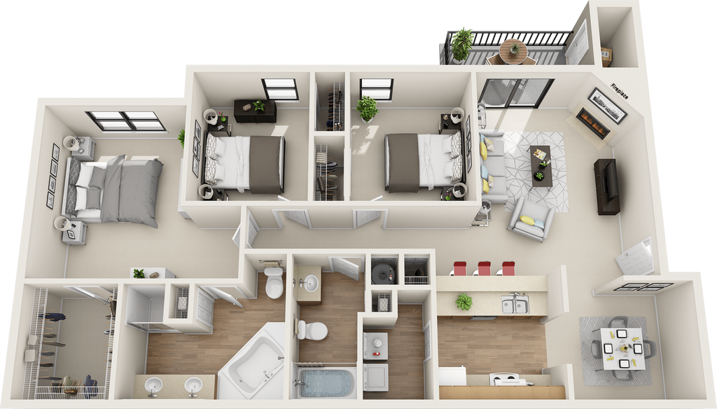 Modelo de apartamento: Banyan1 Dormitorio, 1 Baño, 797 sq ftDisponible Ahora![]()