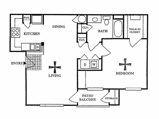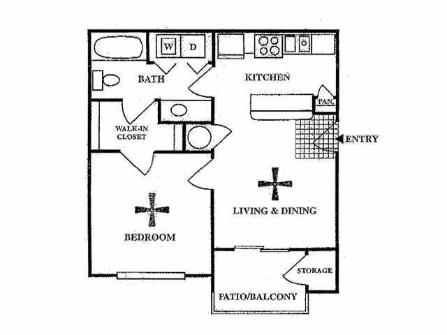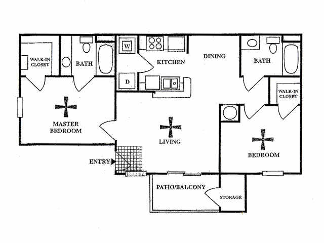Modelo de apartamento: A2$9951 Dormitorio, 1 Baño, 736 sq ftDisponible AhoraA2 - Plano 1 2 Dormitorios