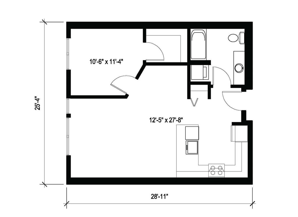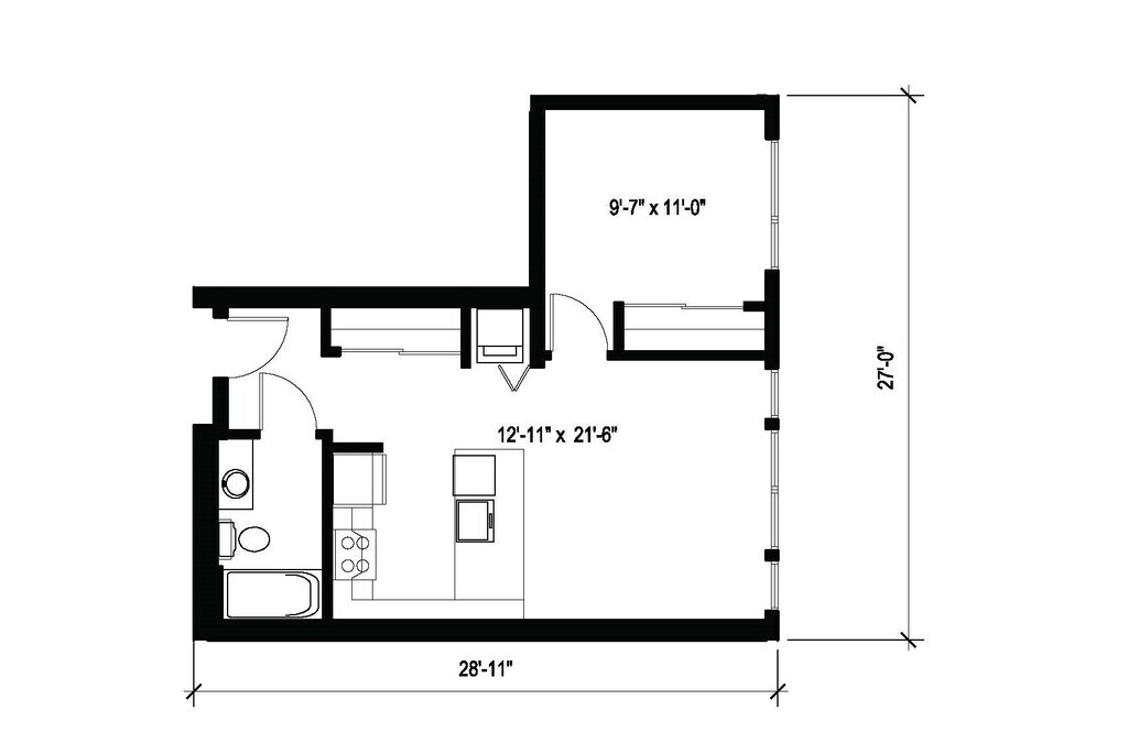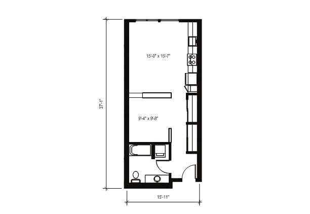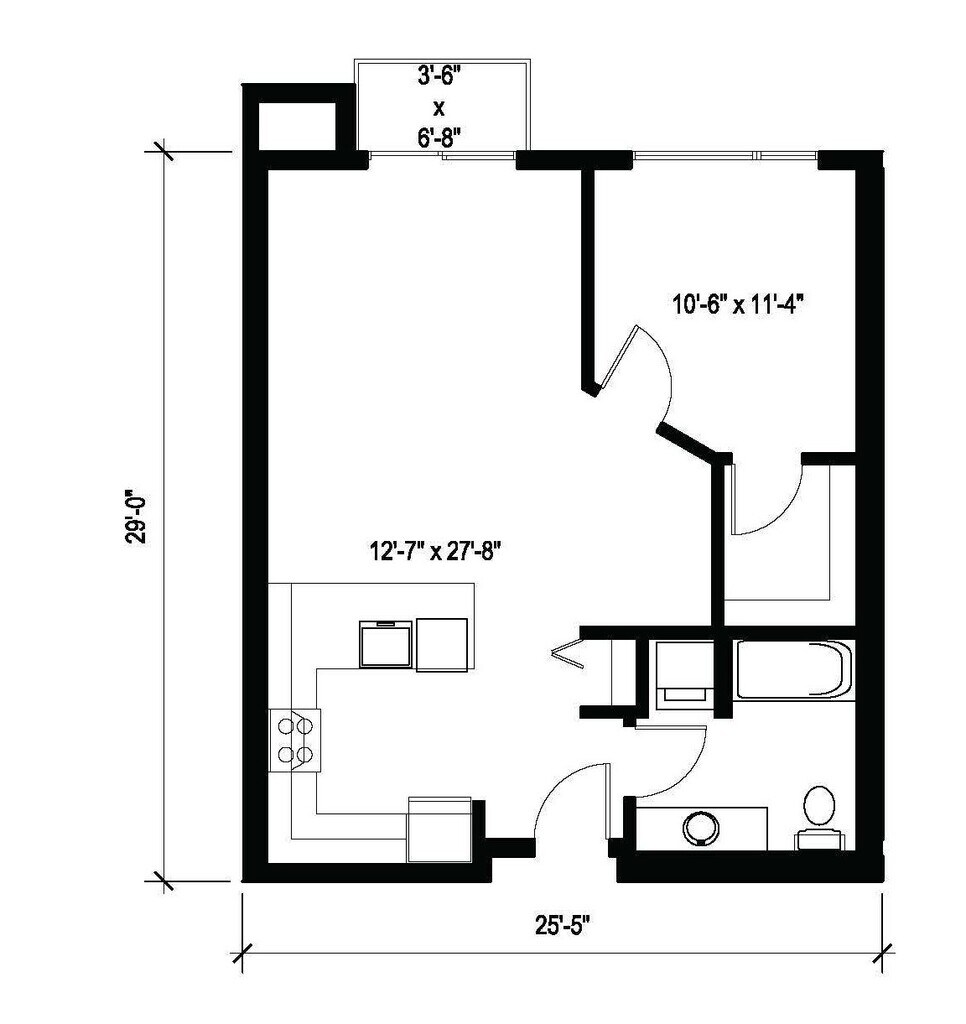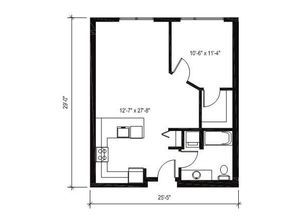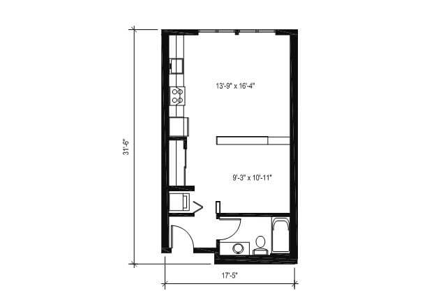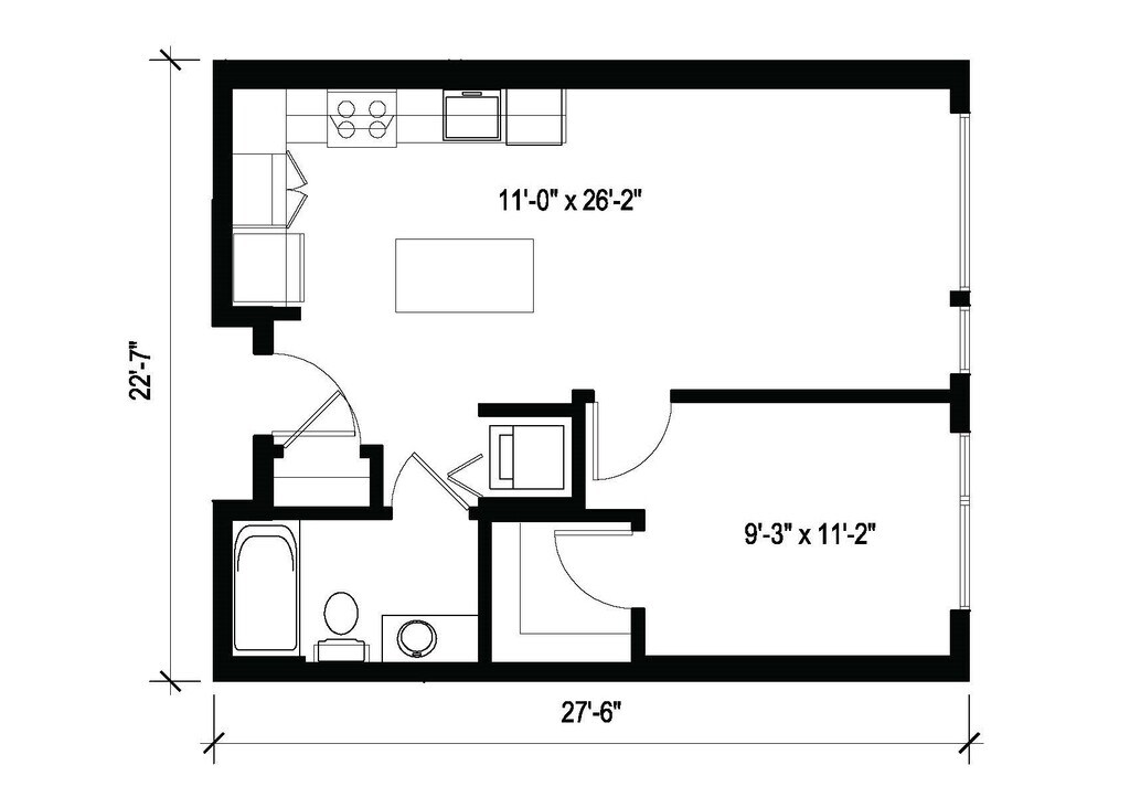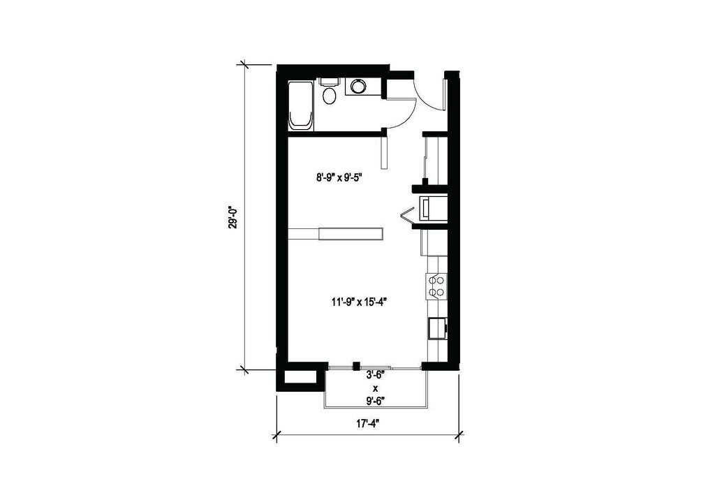 Estudio, 1 Baño, 476 pies²Disponible AhoraGalería del Modelo
