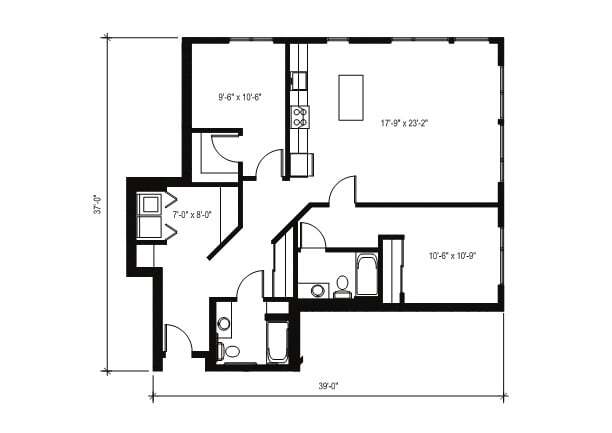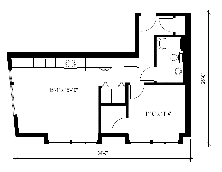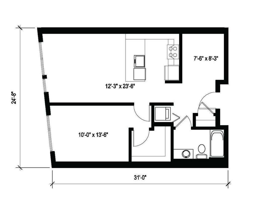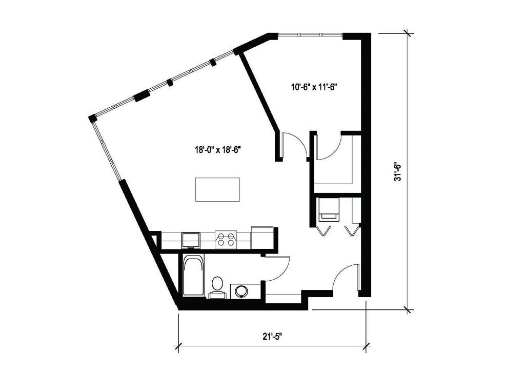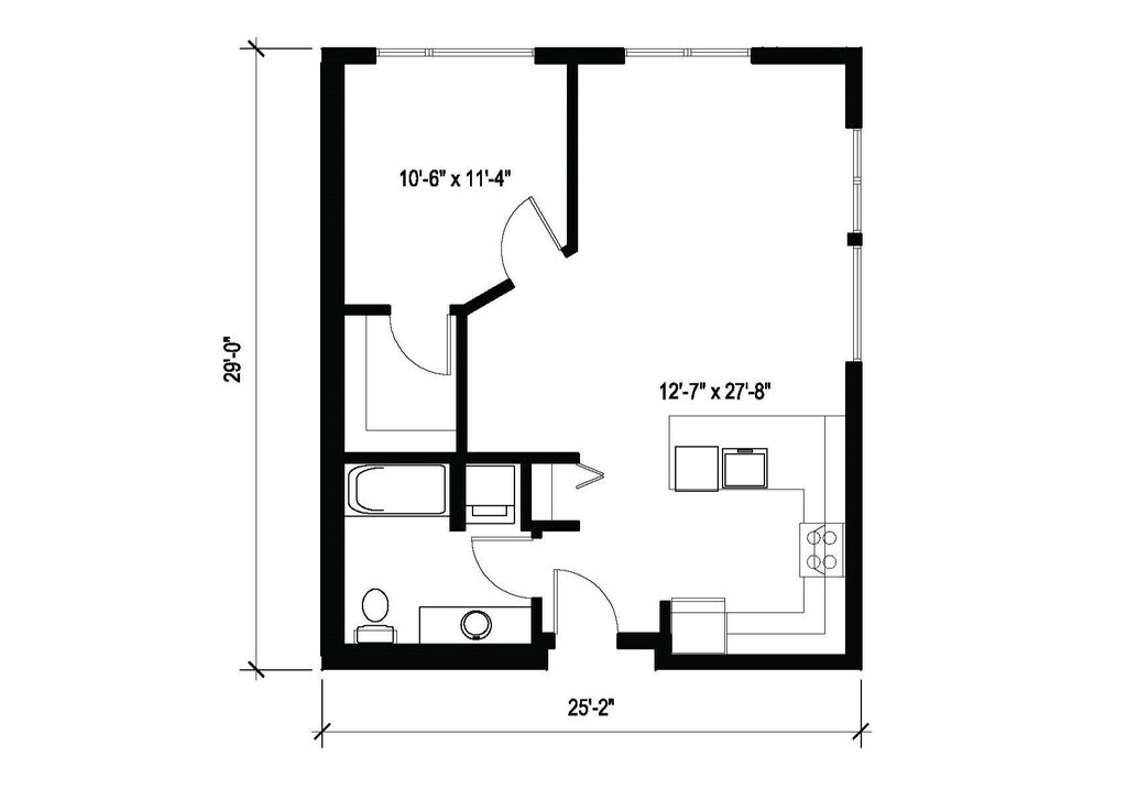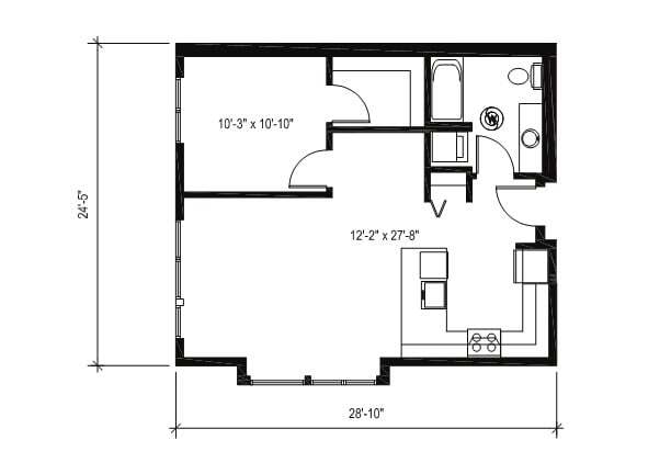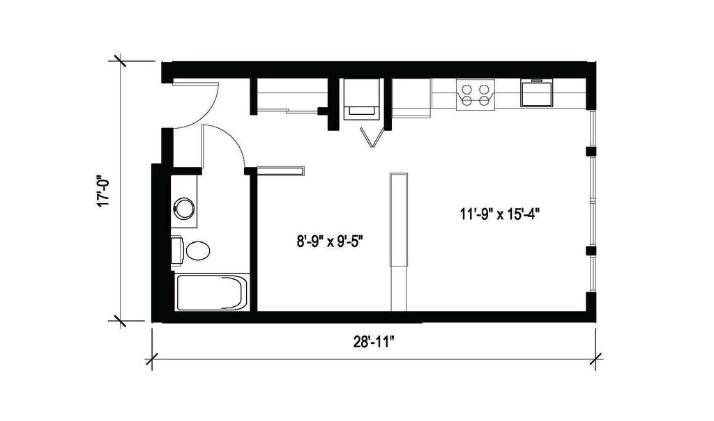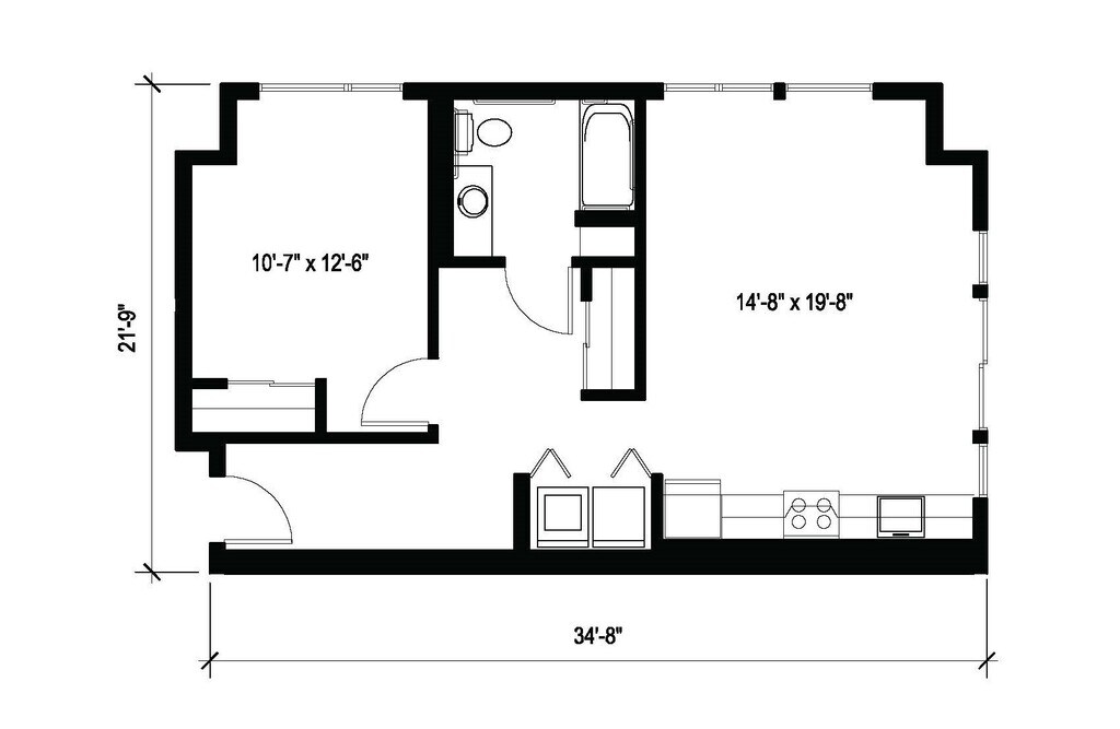 Estudio, 1 Baño, 476 pies²Disponible AhoraGalería del Modelo