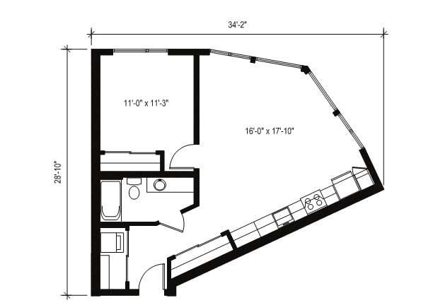 Estudio, 1 Baño, 597 pies²Disponible AhoraGalería del Modelo