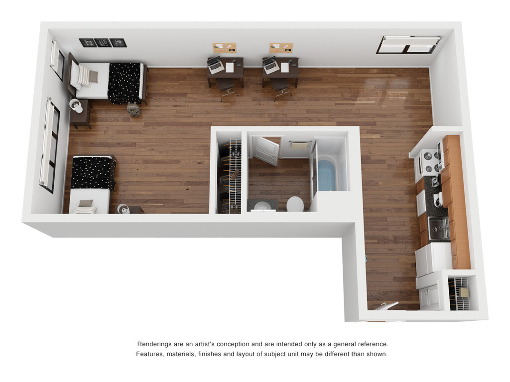Estudio, 1 Baño, 410-655 pies²Detalles de Diponibilidad