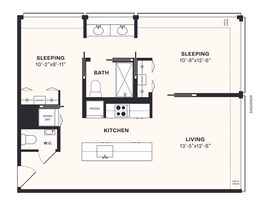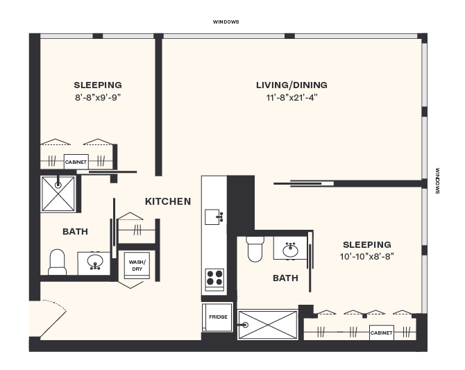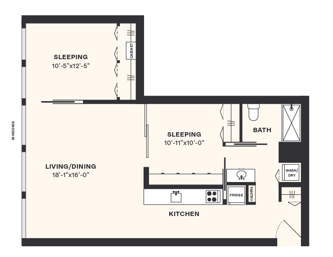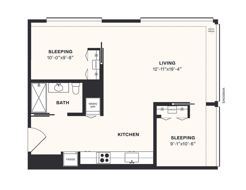 Modelo de apartamento: S5Desde $2,505Estudio, 1 Baño, 450 sq ftDisponible Ahora![]()