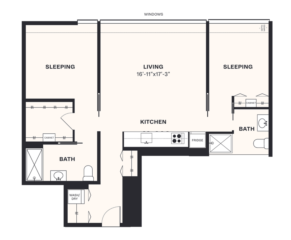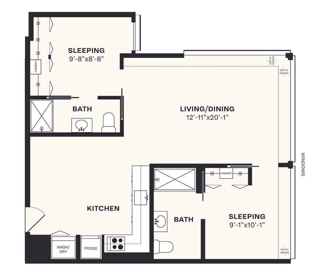 Modelo de apartamento: M2Desde $2,6551 Dormitorio, 1 Baño, 584 sq ftDisponible Ahora![]()