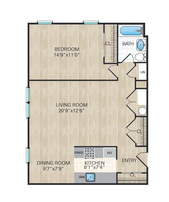1 Dormitorio, 1 Baño, 750 pies²Disponible AhoraGalería del Modelo