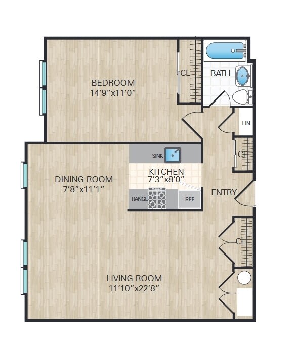 Modelo de apartamento: 1 Bedroom, 1 Bath LargeDesde $2,0651 Dormitorio, 1 Baño, 750 sq ftDisponible Ahora![]()