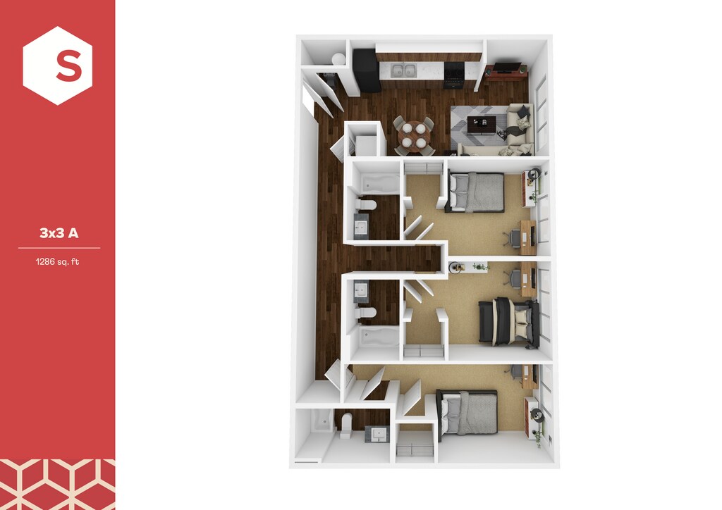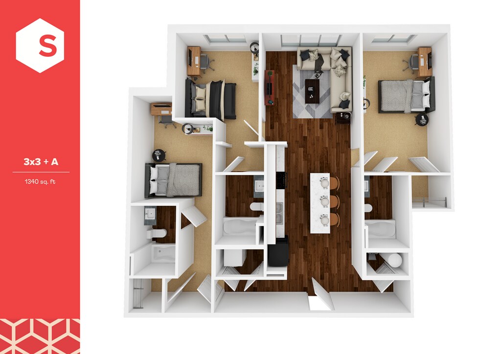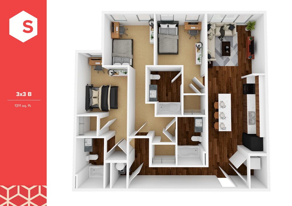 Estudio, 1 Baño, 476-577 pies²Precio Mensual TotalDisponible Aug 13El más grandeEsta opción tiene las unidades más grandes para este modeloGalería del Modelo