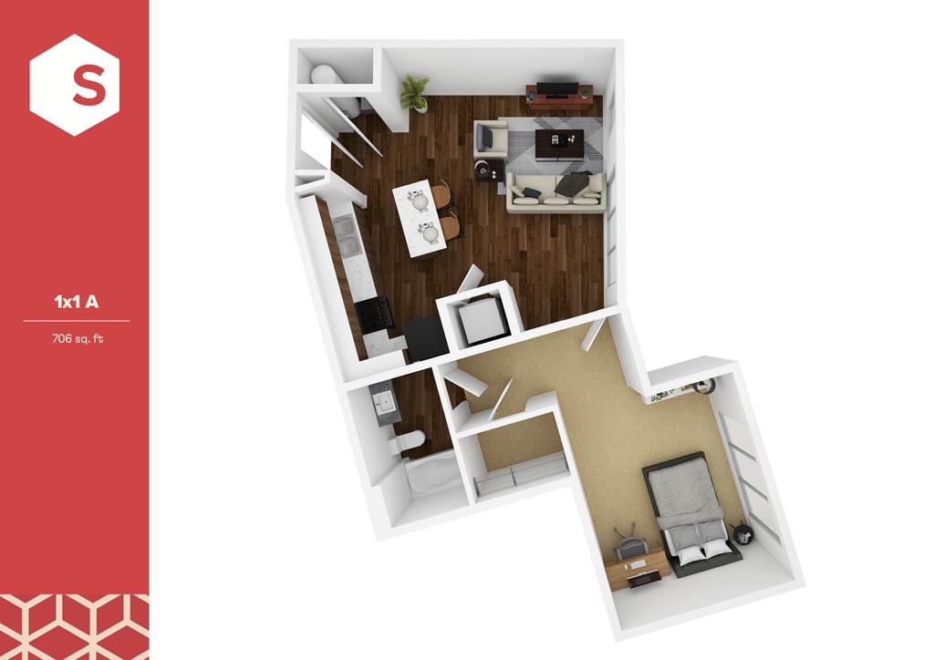 1 Dormitorio, 1 Baño, 706 pies²Precio Mensual TotalDisponible Aug 13Galería del Modelo