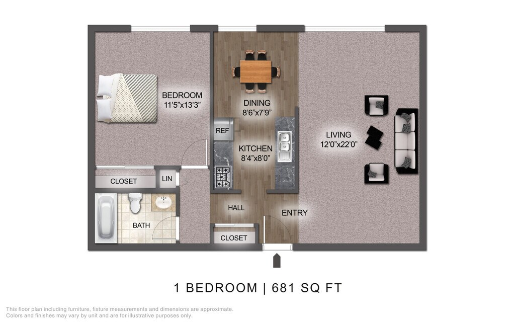 Unidad: 820012 - Imagen 10 Unidad de apartamento: 820025Modelo de apartamento: 1 Bedroom$1,2251 Dormitorio, 1 Baño, 681 sq ftDisponible Ahora2 Dormitorios