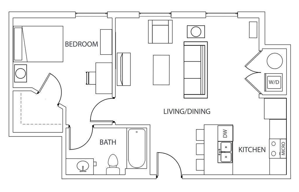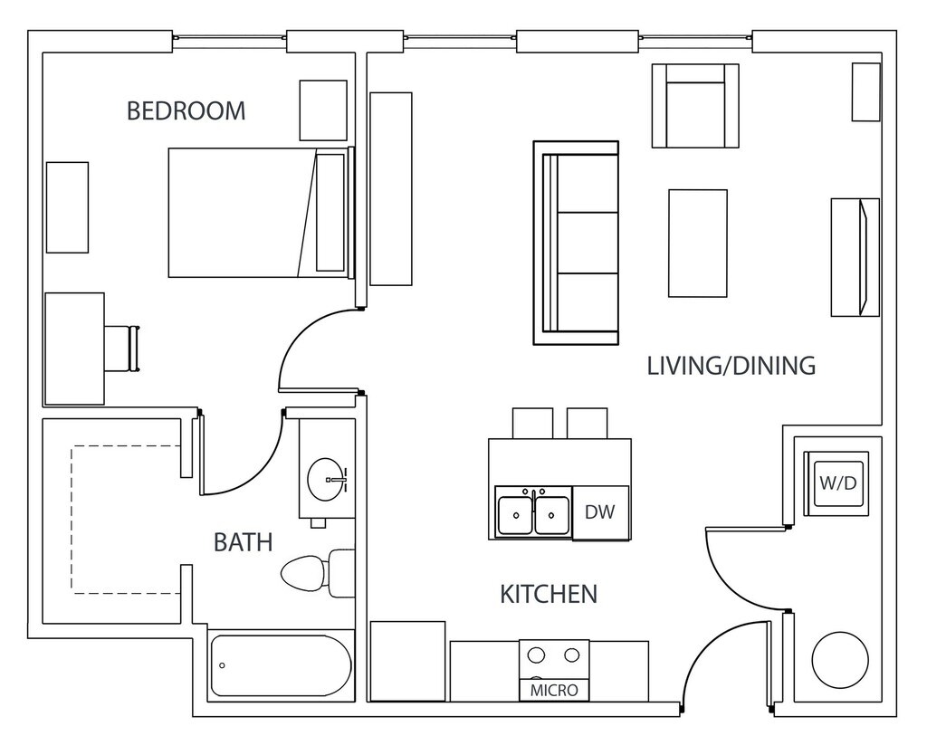 1 Dormitorio, 1 Baño, 579 pies²Disponible August 20, 2026Galería del Modelo