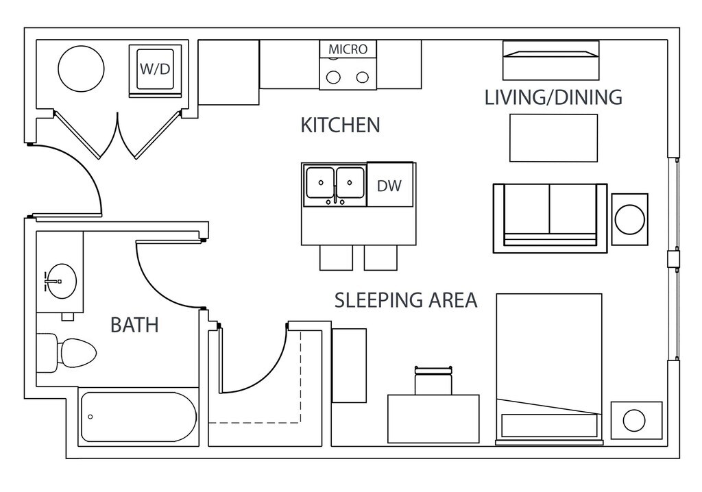 Studio - S.2 - Plano 4 Unidad de apartamento: PrivateModelo de apartamento: Studio - S.2Estudio, 1 Baño, 538 sq ftDisponible August 20, 20261 Dormitorio