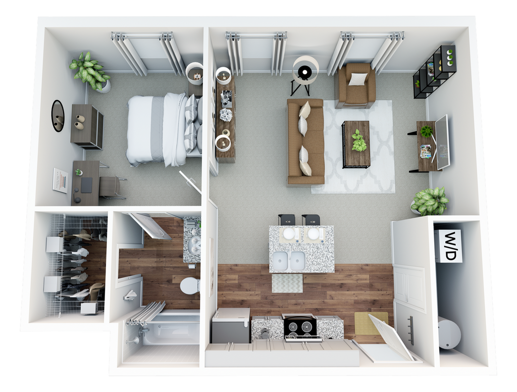 1 Dormitorio, 1 Baño, 614 pies²Disponible August 20, 2026Galería del Modelo