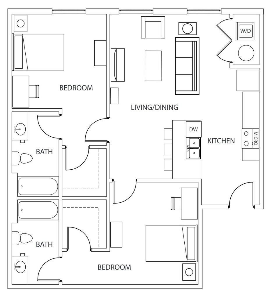 2BR/2BA - 2.3 - Plano 3 Unidad de apartamento: PrivateModelo de apartamento: 2BR/2BA - 2.32 Dormitorios, 2 Baños, 829 sq ftDisponible August 20, 20262BR/2BA - 2.1