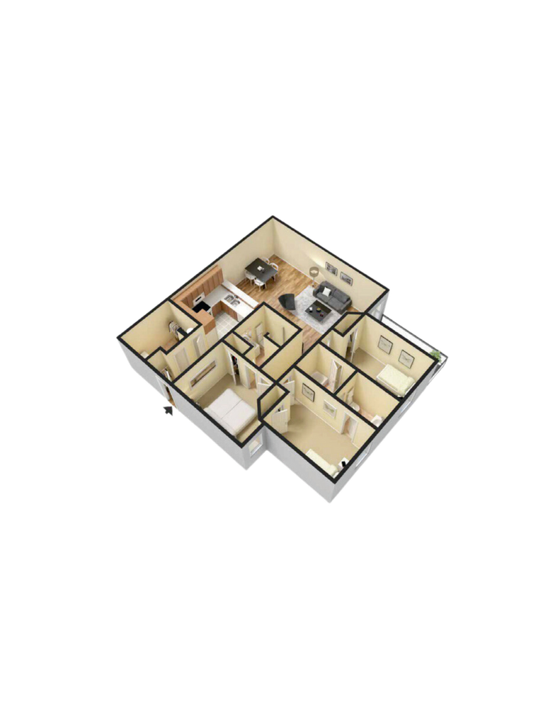 Modelo de apartamento: Union Station$7753 Dormitorios, 3 Baños, 1366 sq ftDisponible August 11, 2026![]()