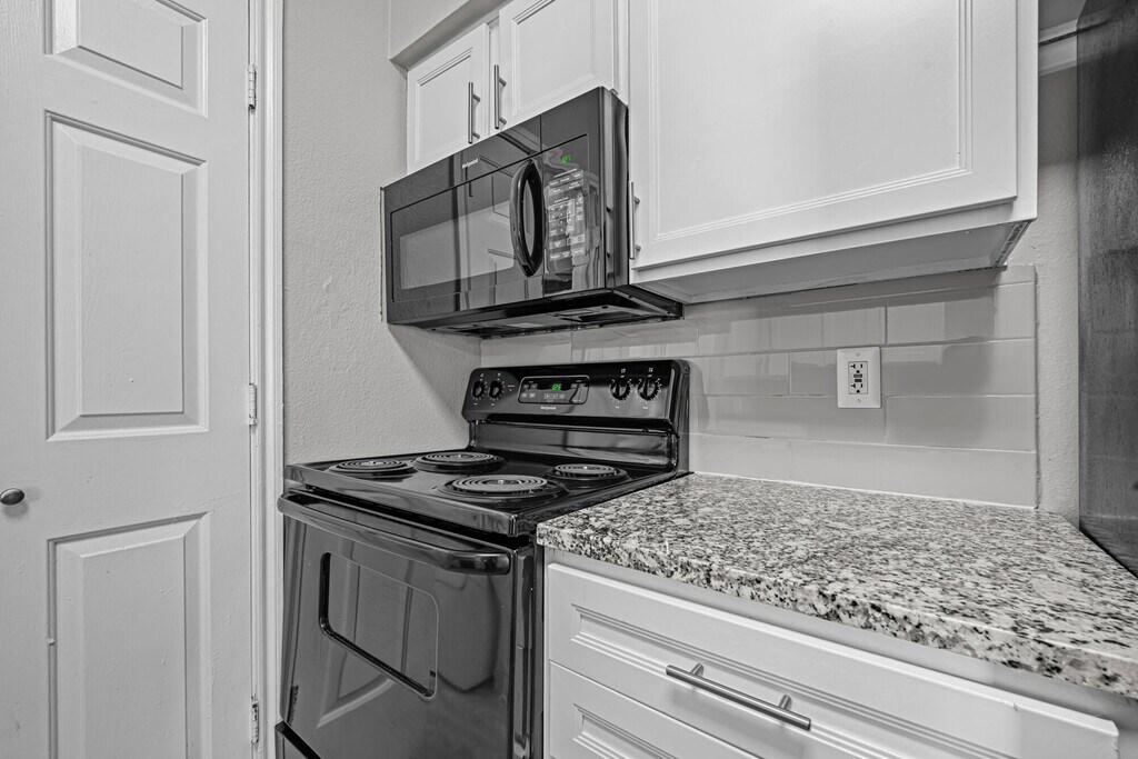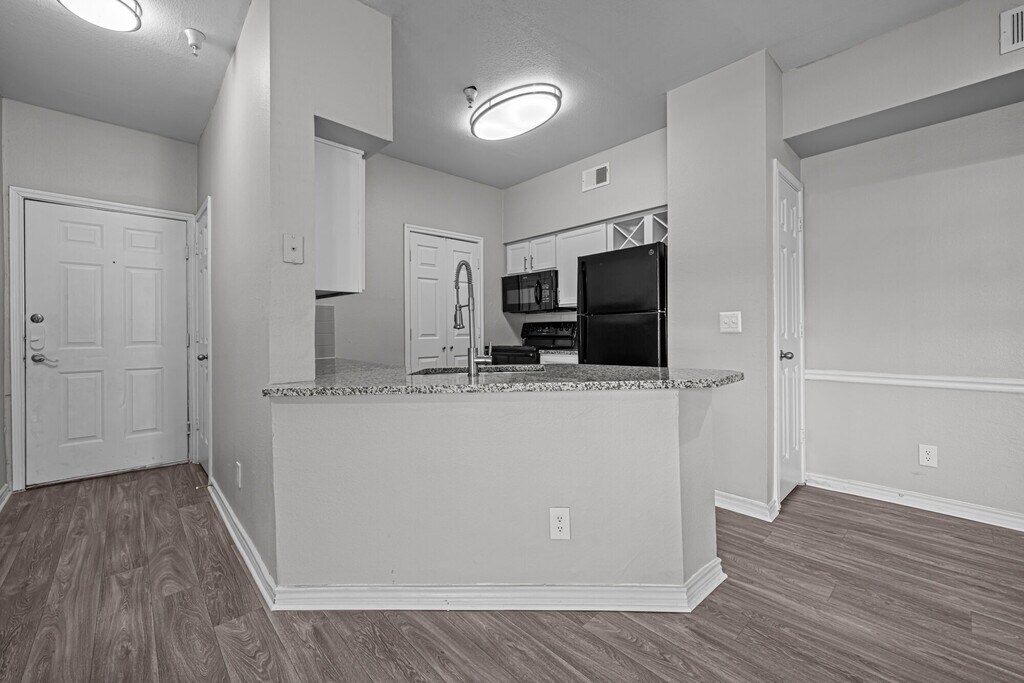 - Moderna actualización con granito, azulejos tipo metro y pisos negros.