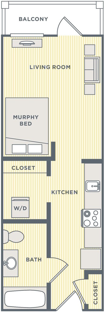 Estudio, 1 Baño, 434 pies²Disponible AhoraGalería del Modelo